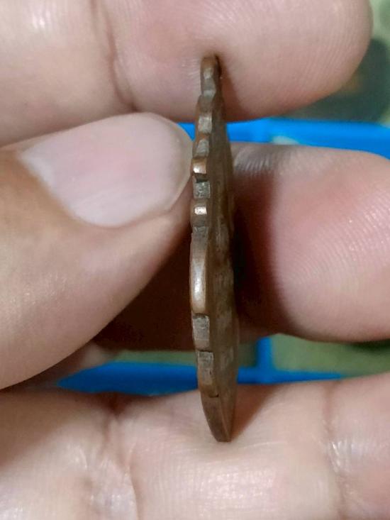 เหรียญใบสาเก หลวงพ่อบ้านแหลม ปี 2514 เนื้อทองแดง |