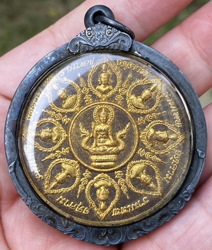 องค์จตุคามรามเทพ รุ่นบูรณะหลักเมือง ปี47 เนื้อมหาว่านปัดทอง 4.5ซม. เลี่ยมเงินเก่า
