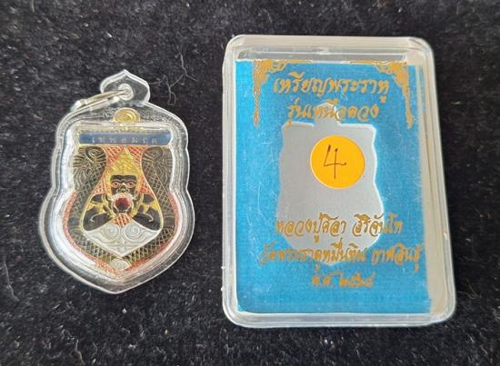 เหรียญพระราหูอมจันทร์ หลวงปู่ศิลา เมตตาอธิษฐานจิต รุ่นเหนือดวง เนื้อทองเหลืองลงยา เลี่ยมกรอบพร้อมใช้ No. |