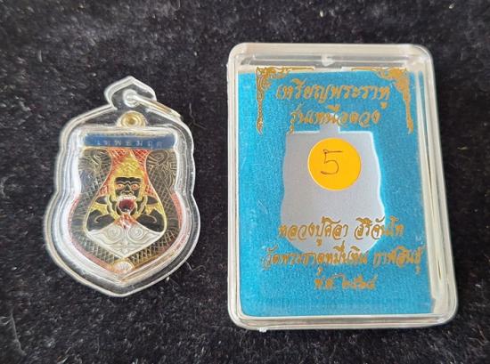 เหรียญพระราหูอมจันทร์ หลวงปู่ศิลา เมตตาอธิษฐานจิต รุ่นเหนือดวง เนื้อทองเหลืองลงยา เลี่ยมกรอบพร้อมใช้ No.5 |