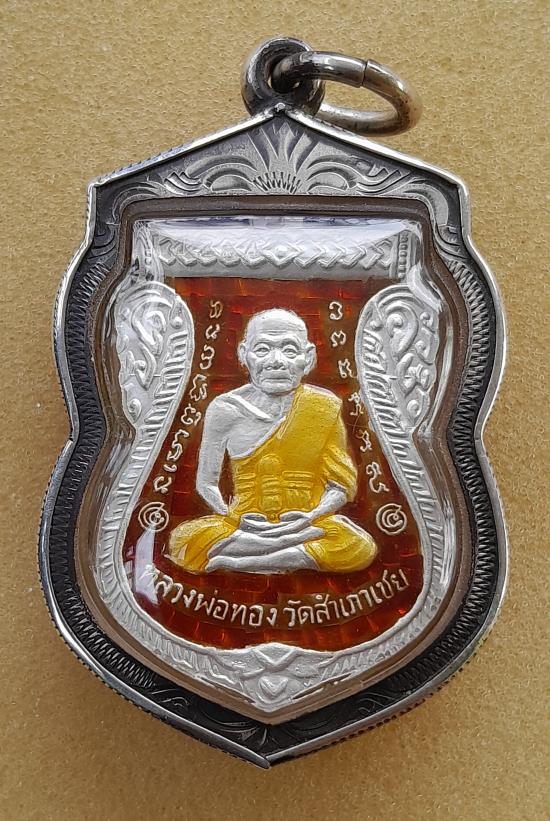 เหรียญพิมพ์เสมาหน้าเลื่อน2หน้าหลวงพ่อทวด-หลวงพ่อทองเนื้อเงินลงยาแดง รุ่นแซยิด93 วัดสำเภาเชยปี2553
