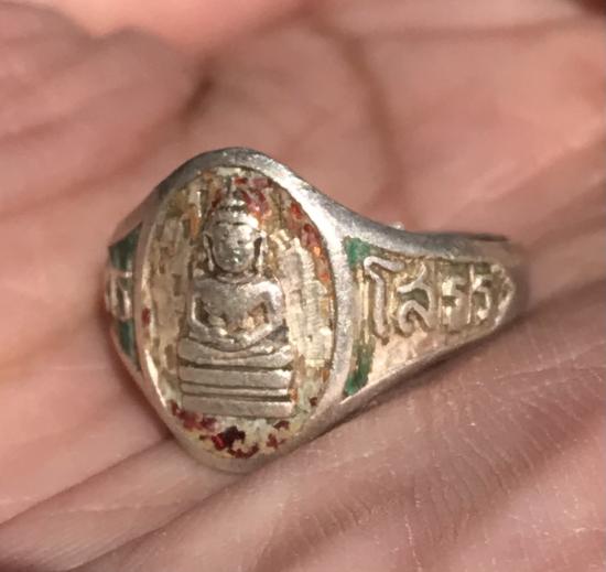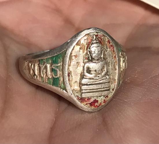 แหวนพระพุทธโสธร เนื้อเงินลงยา ปี 2503 วัดโสธรฯ จ.ฉะเชิงเทรา สภาพสึก แหวนโดนตัดตามภาพครับ |