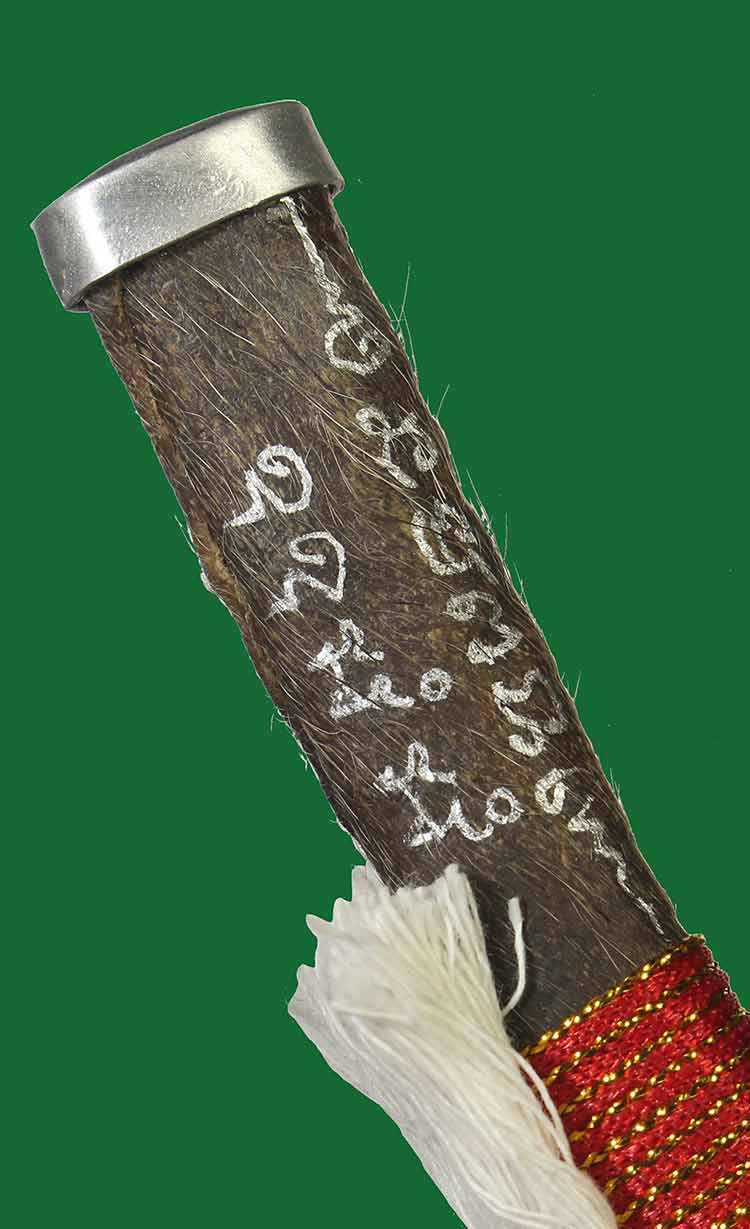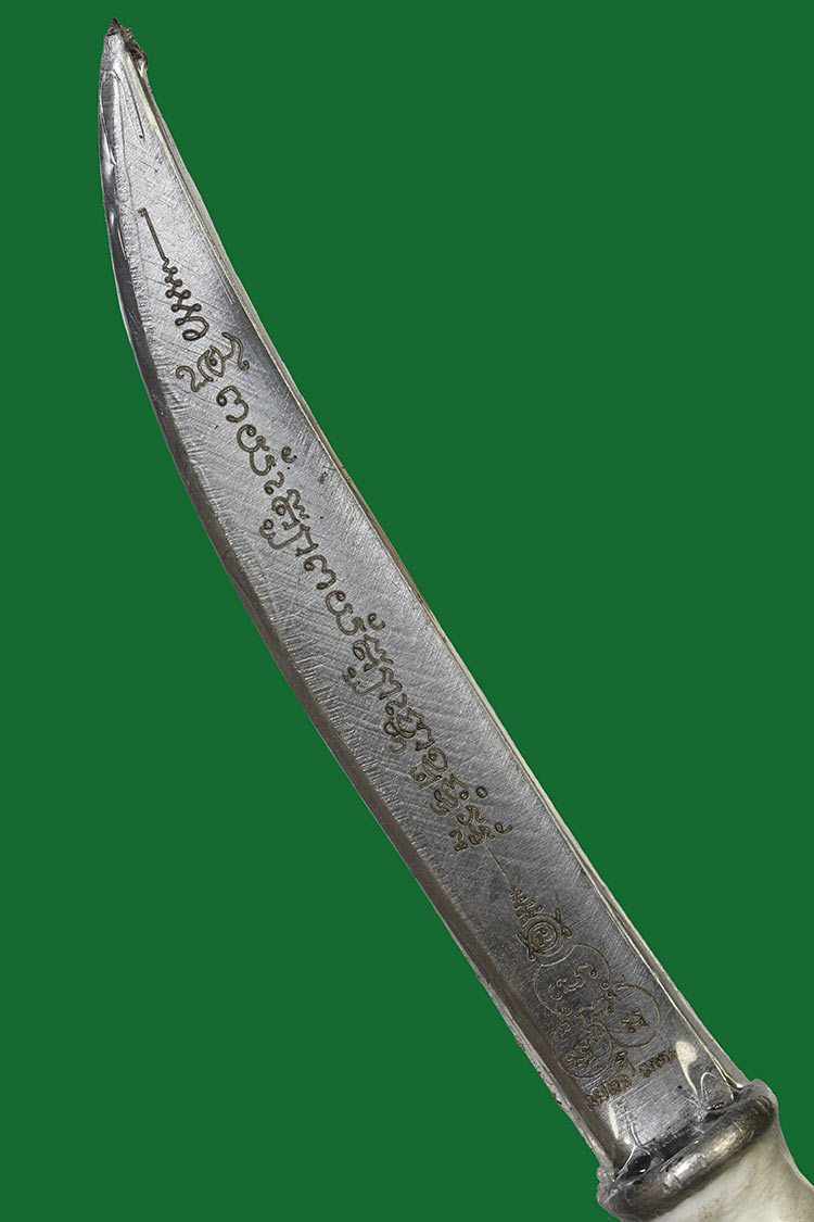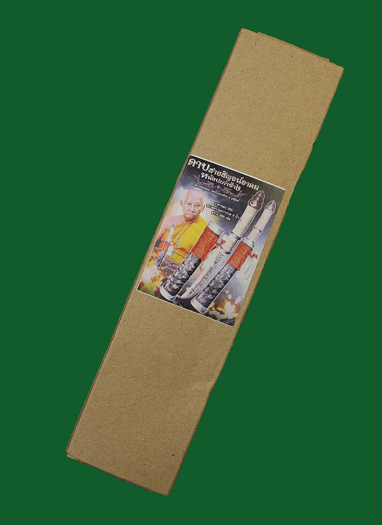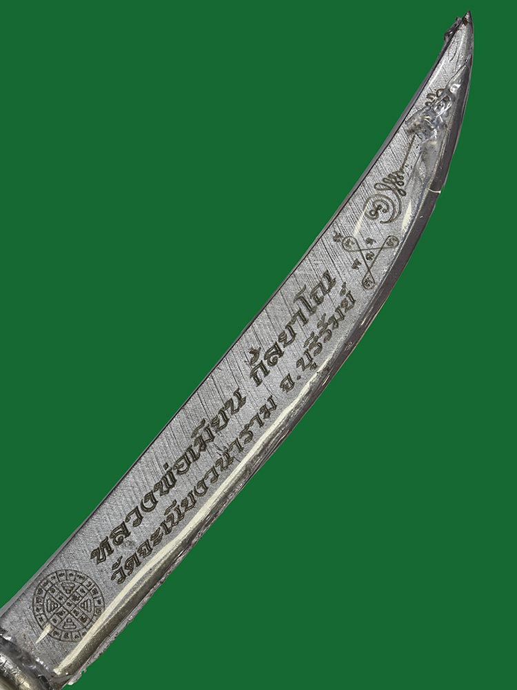 วัดใจ**เครื่องราง ดาบสายสิญจน์อาคม*{ หนังปะกำช้าง }*ขนาดรวมด้าม 6.นิ้ว หลวงพ่อเมียน กัลยาโณ วัดบ้านจะเนียง สร้าง 99 เล่ม สวย....เดิมๆครับ