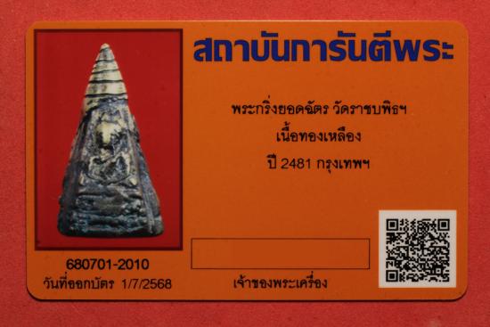 เคาะ เดียว ***พระหล่อโบราณ กริ่งยอดฉัตร วัดราชบพิธฯ ปี 2481 เนื้อทองผสม พิมพ์พระสาม(นิยม) พร้อมบัตรรับรอง***