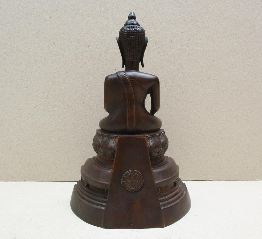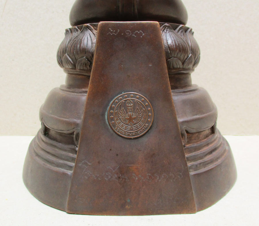 ฐานกว้าง 7 นิ้ว....ส่วนลึก 4.5 นิ้ว มองเห็นดินคราบเบ้าและลวดชนวนขึ้นหุ่นเทียนองค์พระ มองเห็นเนื้อโลหะผสมแดงเข้มชัดเจน !!