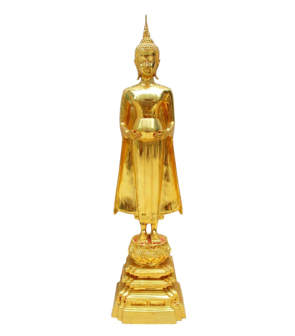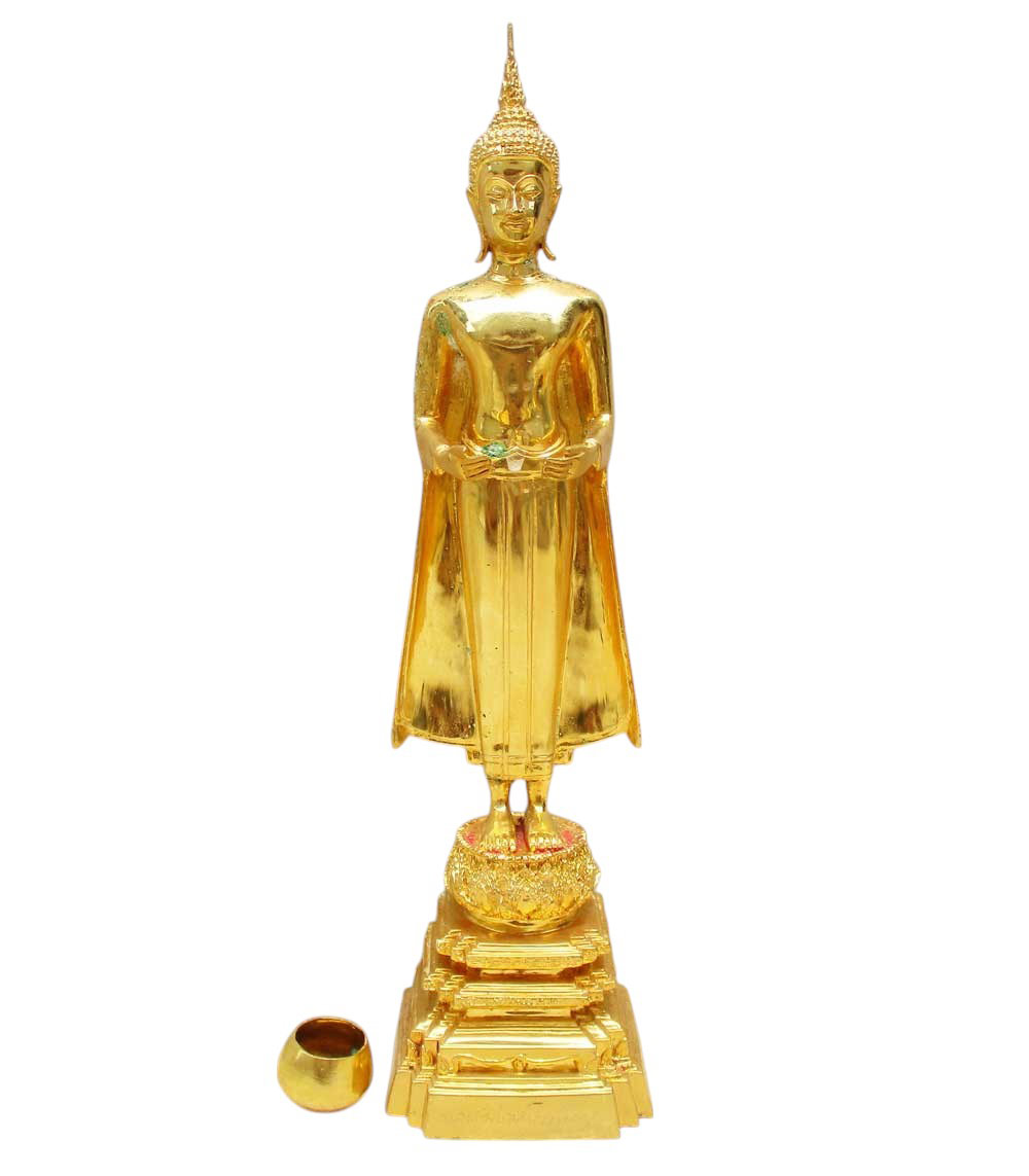 หลวงพ่อบ้านแหลม วัดเพชรสมุทรวรวิหาร จ.สมุทรสงคราม เนื้อโลหะก ระหลั่ยทอง ผิวแห้งหิ้ง บาตรถอดได้ สูงรวมฐาน 19.5 นิ้ว