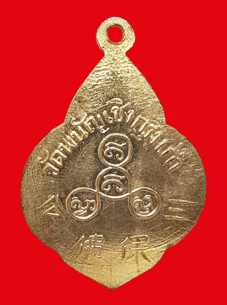 เหรียญพระพุทธไตรยรัตนนายก วัดพนัญเชิง พิมพ์วงเดือน เนื้อทองแดงกะไหล่ทอง ปี 2504 |