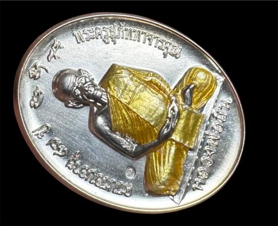 เหรียญหลังเต่า เต็มองค์ ปี2558 เนื้อเงิน ลงยาจีวรเหลือง สร้าง 288 องค์ หมายเลข 222 พระสวยมากๆส่งพร้อมกล่อง