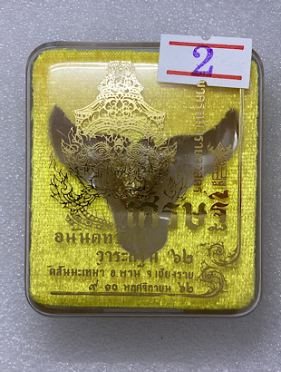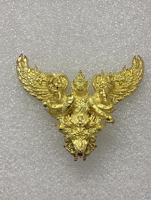 พญาครุฑมังรายศาสตร์ เศรษฐีอนันตทรัพย์ พระอาจารย์วิรุต วัดสันมะเหม้า จ.เชียงราย เนื้อสัมฤทธิ์ชุบทองขัดเงาบางส่วน พิมพ์เล็ก สูง 3 ซ.ม. กล่องเดิม |