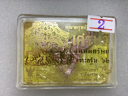 ชื่อพระเครื่อง เคาะเดียวแดง 100 พญาครุฑมังรายศาสตร์ เศรษฐีอนันตทรัพย์ พระอาจารย์วิรุต วัดสันมะเหม้า จ.เชียงราย เนื้อมหาชนวนทองเมืองพาน สูง 4 ซ.ม. พิมพ์ใหญ่ กล่องเดิม