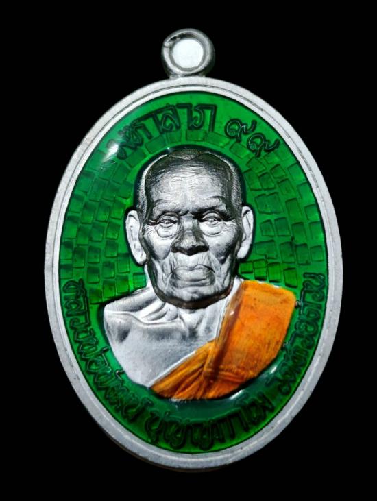 เหรียญมหาลาภ๙๙ ตะกรุดคู่ชีวิต เนื้อเงินลงยาเขียว หมายเลข ๔๖ จำนวนการสร้าง ๘๙ เหรียญ พร้อมกล่องเดิม หลวงพ่อพัฒน์ ปุญญกาโม วัดห้วยด้วน