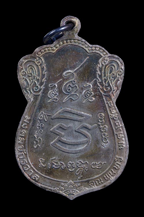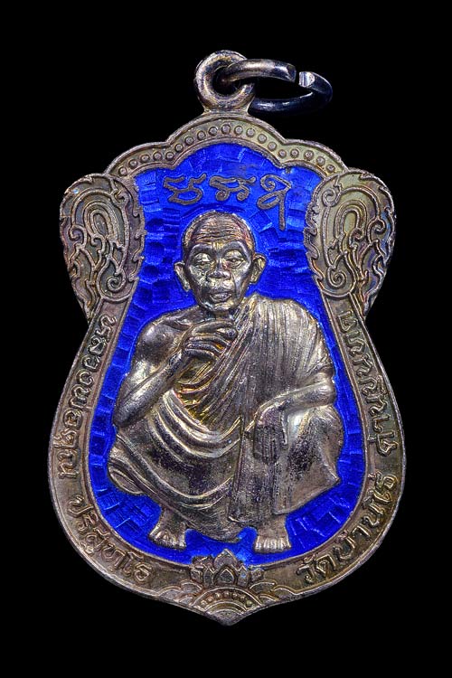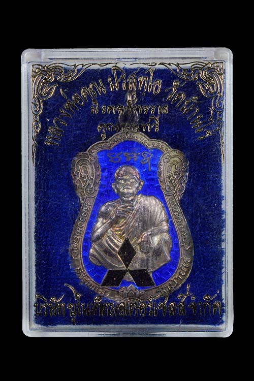 เหรียญเสมา รุ่น มงคลจักรวาล คูณพูนทวี ผู้จัดสร้าง บ. ยูไนเต็ดมอเตอร์เชลส์ จำกัด มิตซูบิชิ( เนื้อเงินลงยาน้ำเงิน ) พ.ศ.2538 ( กล่องเดิม )