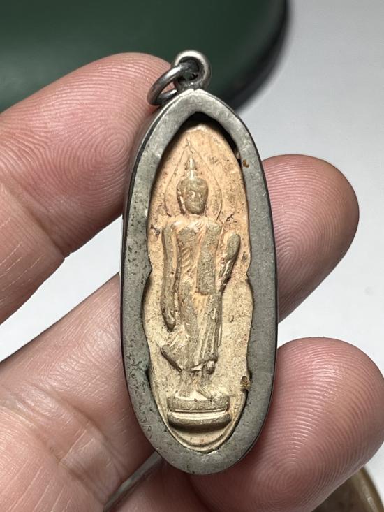 วัดใจแดงเคาะแรก พระลีลา 25 พุทธศตวรรษ เนื้อดิน พระบ้านบ้านพร้อมกรอบโบราณตามภาพครับ