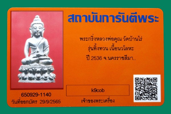 ยุคนี้จำต้องขายต่ำกว่าทุน! .. พระกริ่งหลวงพ่อคูณ วัดบ้านไร่ รุ่นทิ้งทวน ปี 2536 เนื้อนวโลหะ ก้นเงิน มีบัตรรับรองความแท้ G-PRA ตัวจริงหายาก + มีกล่องเดิมๆ