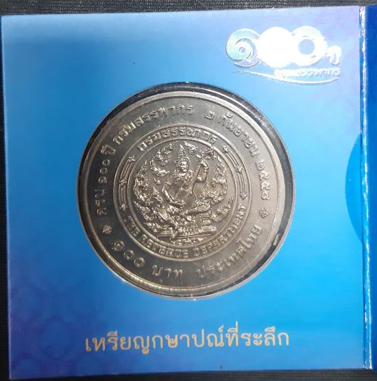 เหรียญในหลวง ที่ระลึกครบรอบ วันสถาปนากรมสรรพากร 100 ปี ชนิดราคา100บาท |