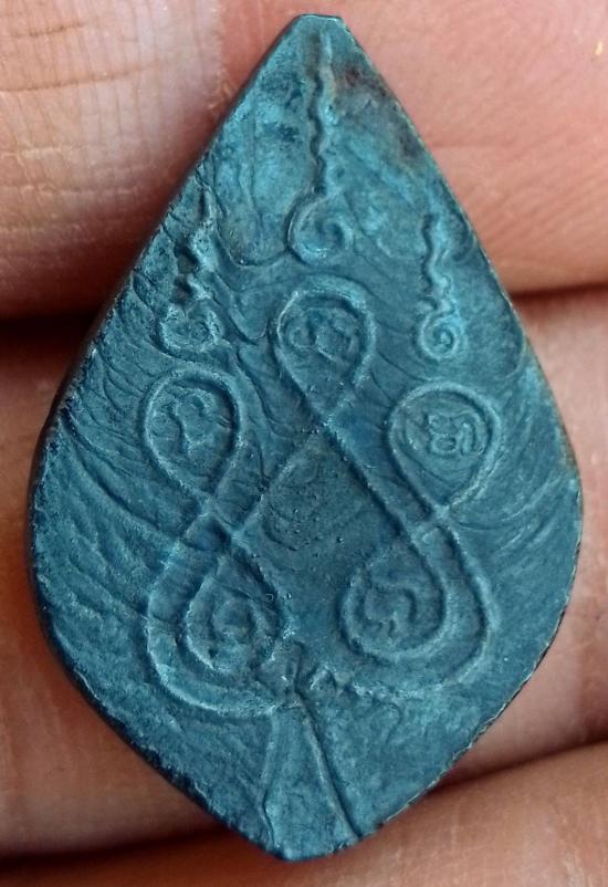 เหรียญหล่อโบราณ พระกลีบบัวหลวงพ่อเฮงวัดบ้านขอม เนื้อเมฆพัตร หลังยันต์ห้า |