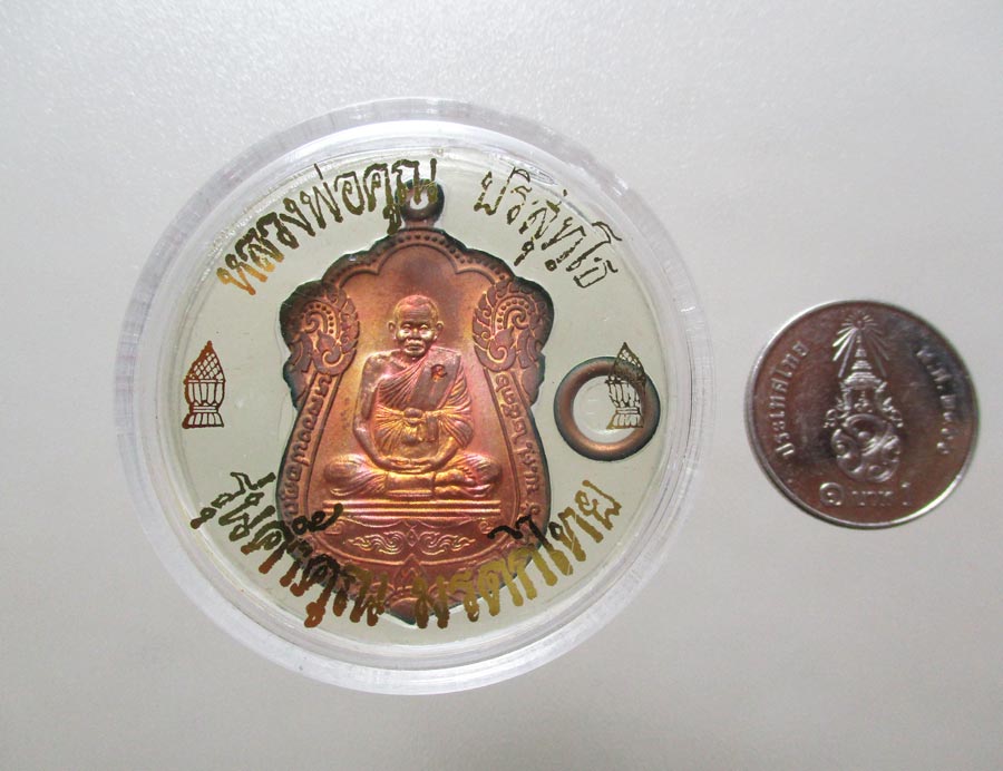 เหรียญเสมา หลวงพ่อคูณ วัดบ้านไร่ จ.นครราชสีมา รุ่น ค้ำคูณมรดกไทย พ.ศ.2536 เนื้อทองแดง สภาพเหรียญนอนคาตลับใสเดิมๆ