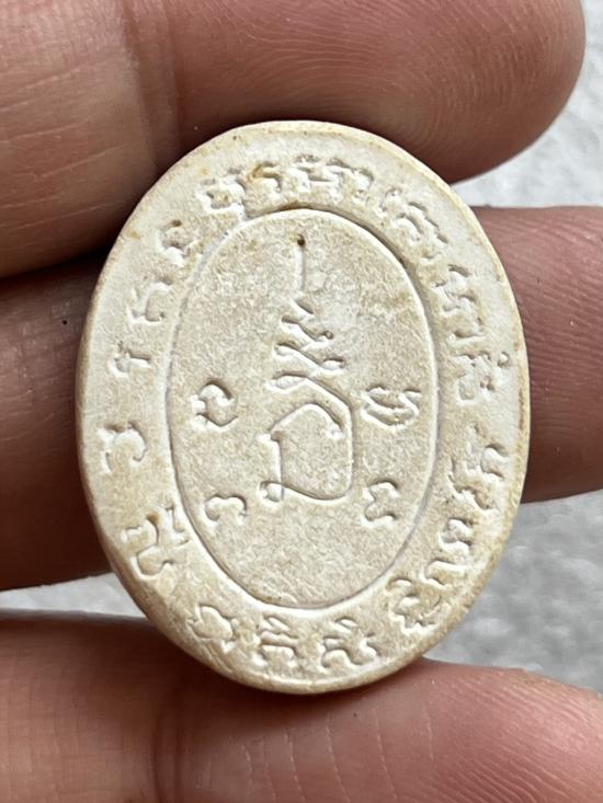 พระเนื้อผงรูปไข่หน้าพระเกจิ หลังยันต์ ไม่ทราบที่