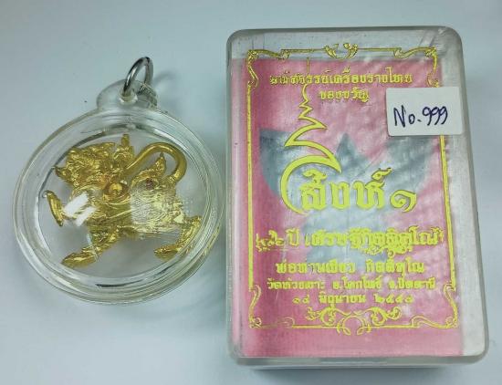 ก้าวก้าวก้าว (999) พญาราชสีห์ รุ่นสิงห์๑ ๘๖ปี เศรษฐีกิตติคุโณ พ่อท่านเขียว วัดห้วยเงาะ เนื้อกะไหล่ทอง เบอร์999 เลี่ยมรักษาผิวและกล่องครับ