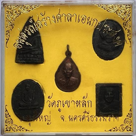 พระชุดกรรมการรุ่นสร้างศาลา วัดภูเขาหลัก 5องค์(ในชุดมีเหรียญหยดน้ำพ่อท่านนวล วัดไสหร้าปี38) เคาะเดียว