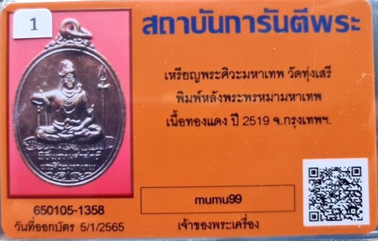 ## เหรียญพระศิวะมหาเทพ หลังพระพรหม...พิธีพรหมศาสตร์ ปี 2519 อาจารย์ชุม ไชยคีรี ออกที่ วัดทุ่งเสรี หัวหมาก พิธีเดียวกับ ศิวะลึงค์ และ มีดหมอ รุ่นแรก ของท่าน พิธีใหญ่มาก พร้อมบัตรรับรอง ....(อ.ชุม ไชยคี |