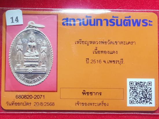 เหรียญ ลพ.วัดเขาตะเครา เนื้อทองแดง ปี2516 จ.เพชรบุรี
