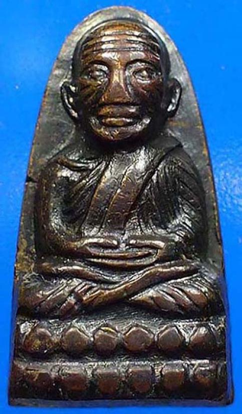พระหลวงปู่ทวด วัดช้างให้ พิมพ์หลังตัวหนังสือเล็ก ( ว หัวกลวง ) เนื้อทองเหลือง ปี 2505 จ.ปัตตานี พร้อมบัตรรับรองสถาบันการันตีพระ