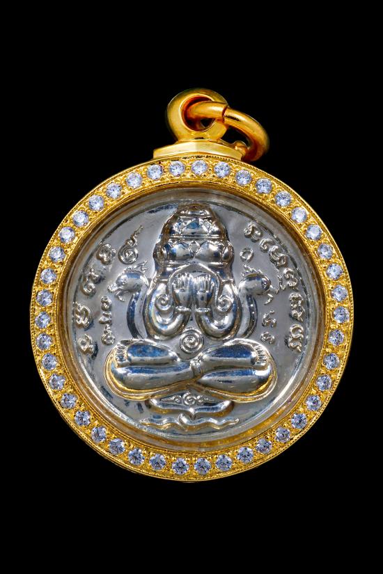 ปิดตาพังพระกาฬ วัดมหาธาตุฯรุ่นเหนือดวงเนื้อกะไหล่เงินปี2559 จ.นครศรีธรรมราช หมายเลข ๕๕๕ มาพร้อมตลับอิตาลี่พร้อมขึ้นคอ