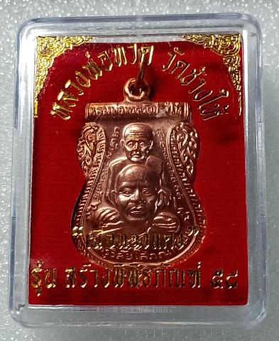 *แดงแปร็ดๆ** เหรียญเสมาพุทธซ้อน รุ่นพิพิธภัณฑ์ ปี 2558 หลวงปู่ทวด วัดช้างให้ จ.ปัตตานี เนื้อทองแดงผิวไฟ-ปี58 +กล่องเดิมใสๆ