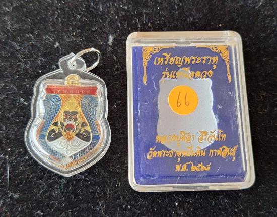 เหรียญพระราหูอมจันทร์ หลวงปู่ศิลา เมตตาอธิษฐานจิต รุ่นเหนือดวง เนื้อทองเหลืองลงยา เลี่ยมกรอบพร้อมใช้ No.66 |