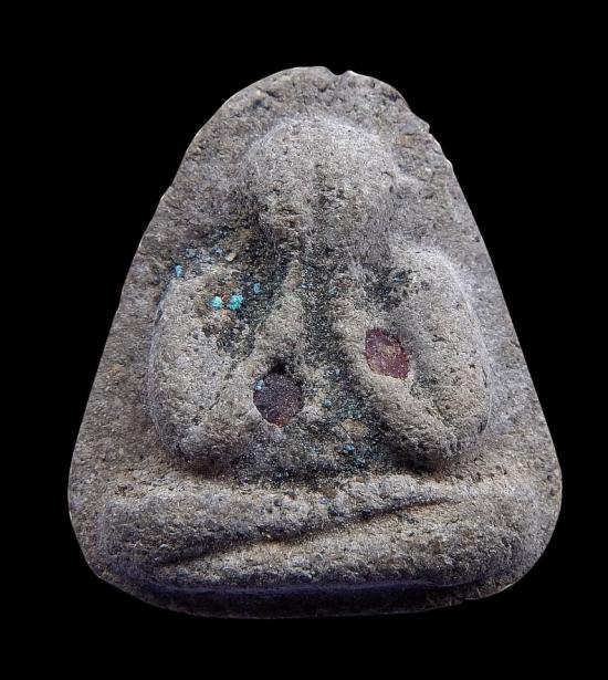 พระปิดตา วัดยายร้า หลวงปู่ทิม ปลุกเสก ปี 2516 เนื้อเทา พลอย 3 เม็ด โรยผงตะไบ กรรมการ