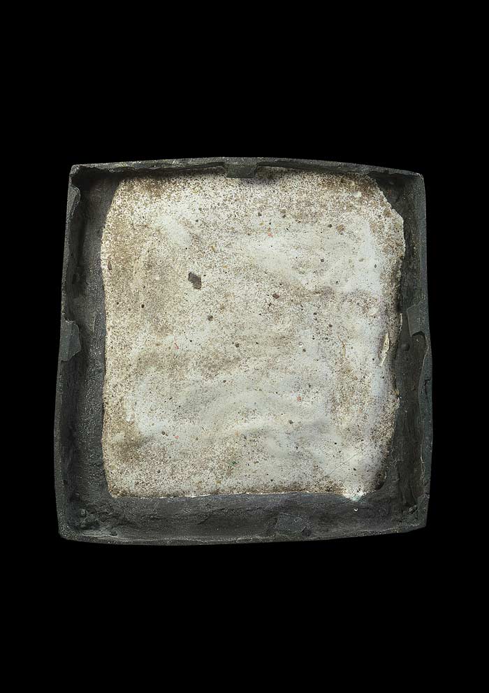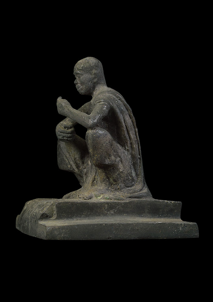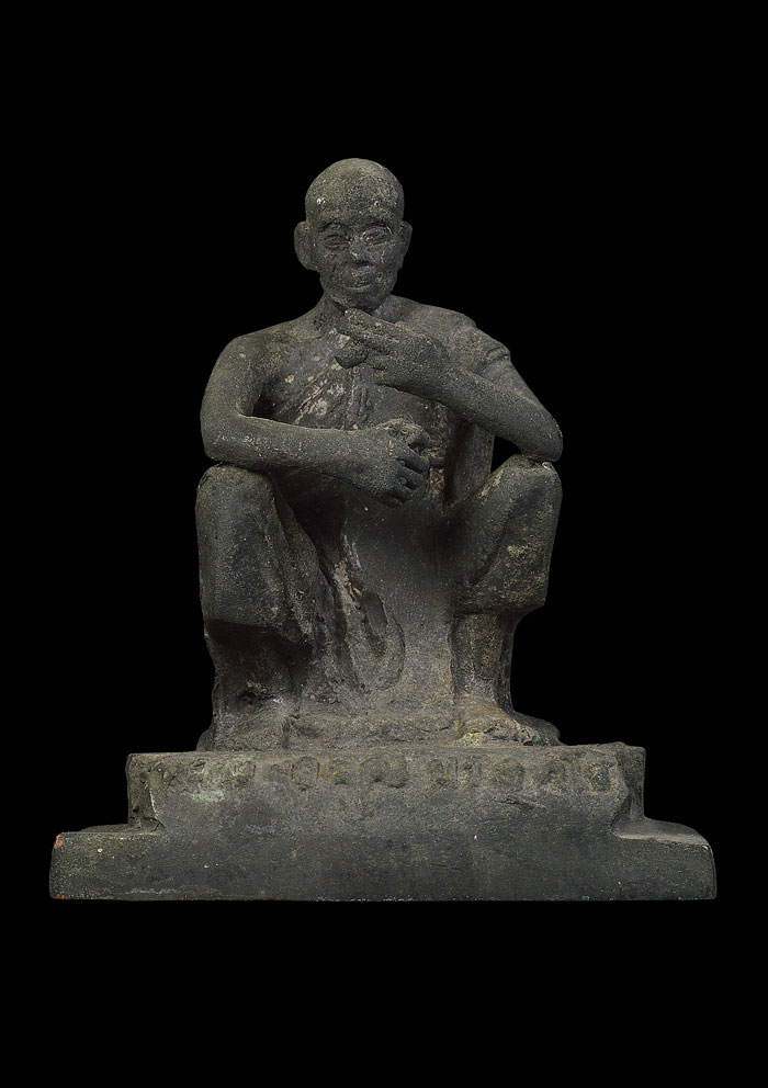พระบูชารูปเหมือนนั่งยอง ( ฐานกว้าง 4 นิ้ว สูง 4.5 นิ้ว เข่าก ว้าง 2.5 นิ้ว ) เนื้อโลหะรมดำ ผิวหิ้ง ) พ.ศ.2537
