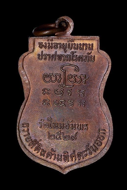 เหรียญเสมานั่งเก้าอี้ จึงมีอายุยืนนาน ปราศจากโรคภัย ถวายที่ดินด้านทิศตะวันออก วัดใหม่อัมพร ( เนื้อทองแดง ) พ.ศ.2528 ** 2 **