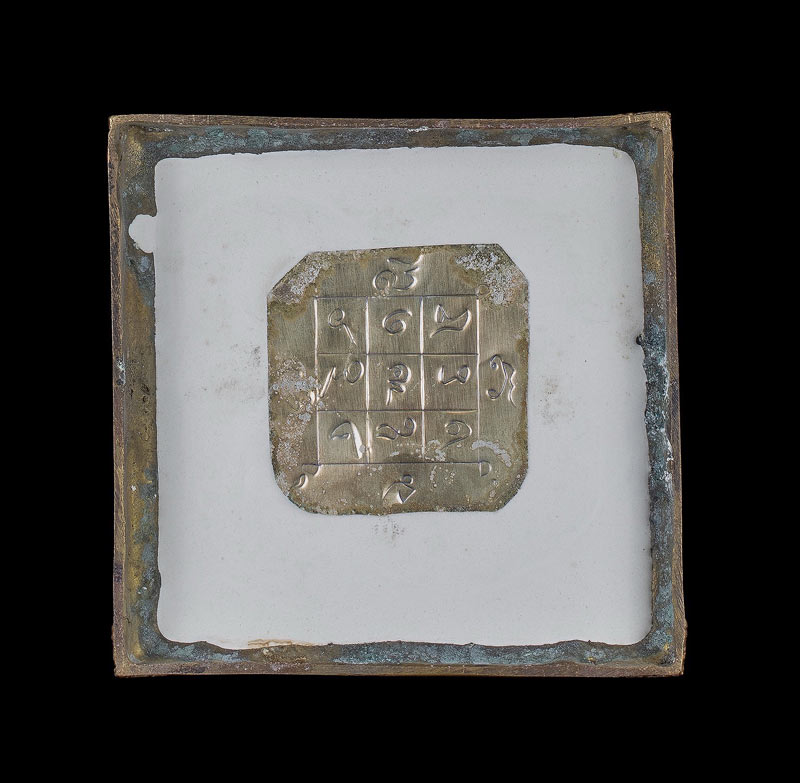 ฐานขนาด 5 นิ้ว X 5 นิ้ว หล่อขอบหนา อุดปูน ฝังแผ่นลงอักขระเลขยันต์จารด้วยมือ !!