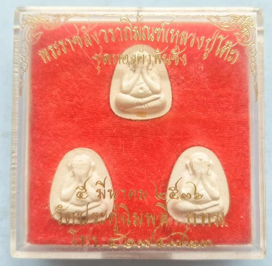 พระปิดตาหลวงปู่โต๊ะ รุ่นทองพันชั่ง ชุด 3 องค์ ตะกรุดทอง ตะกรุดเงิน กล่องเดิมครบชุด