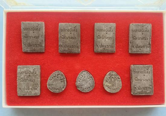 พระชุดที่ระลึกฉลองกรุงรัตนโกสินทร์ 200ปี หลวงปู่เส็ง จันทรังษี วัดบางนา อ.สามโคก จ.ปทุมธานี ปี 2525รวม9องค์ กล่องเดิม