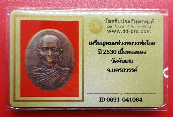เหรียญหมดห่วง หลวงพ่อโอด เนื้อทองแดง ปี2530 วัดจันเสน จ.นครสวรรค์ พร้อมบัตรรับรองครับ