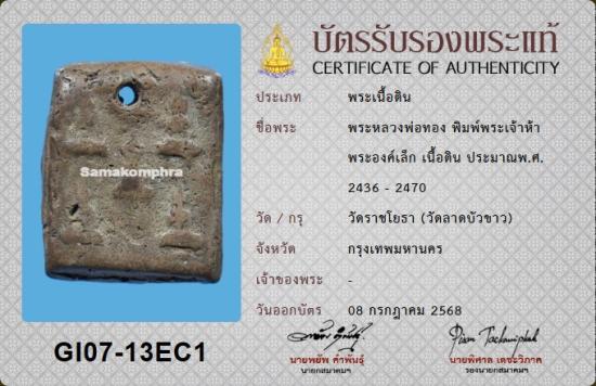 ชื่อพระเครื่อง **เคาะเดียวแดงวัดใจครับ**พระสมเด็จ พระเจ้าห้าพระองค์ เนื้อดิน หลวงปู่ทอง วัดราชโยธา เนื้อดิน ปี2436 พร้อมบัตรสมาคม