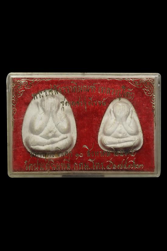 พระปิดตา หลวงปู่โต๊ะ วัดประดู่ฉิมพลี รุ่นเพชรรุ่งโรจน์ พิมพ์จัมโบ้หลังยันต์นะ ฝังตะกรุดทอง 2 ดอก และ พิมพ์หลังยันต์นะ ตะกรุดเงิน 2 ดอก ปี 2535 กล่องเดิม