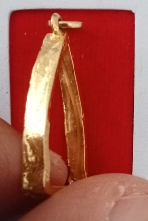 เคาะเดียว กรอบทองทรงพระพุทธโสธรสองหน้า ขนาดจอในฐานกว้าง 1.2 ซม. สูง 2.1 ซม หนาประมาณ 0.3ซม. หนัก 0.39 กรัม ไม่ทราบเปอร์เซ็นต์ทองแต่ไม่น่าต่ำกวา60%