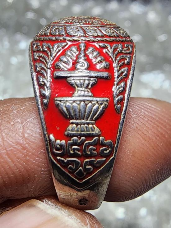 !!! 100 เท่านั้น !!! แหวนหลวงปู่ชื้น วัดญาณเสน อยุธยา เนื้อเงินลงยาสีแดง ปี ๒๕๔๖