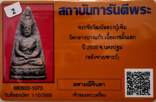 พระยอดธง หลวงปู่เพิ่ม เนื้อผงขมิ้นเสก ปี 2505 หลังจารเฑาะว์ สวย พร้อมบัตรรับรองครับ