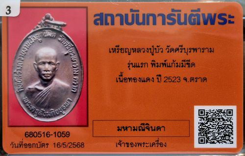 เหรียญรุ่นแรก หลวงปู่บัว วัดศรีบุรพาราม แก้มขีด นิยม สภาพสวย พร้อมบัตรรับรองครับ