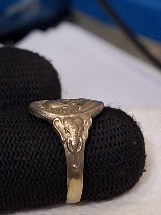 แหวนหลวงปู่ทวดวัดช้างให้ ปี 2506 แจกผู้หญิงเนื้ออัลปาก้า ยันต์จม สภาพสวย ด้านข้างซ้ายขวาเป็นรูปช้าง อาจารย์ทิม ปลุกเสก