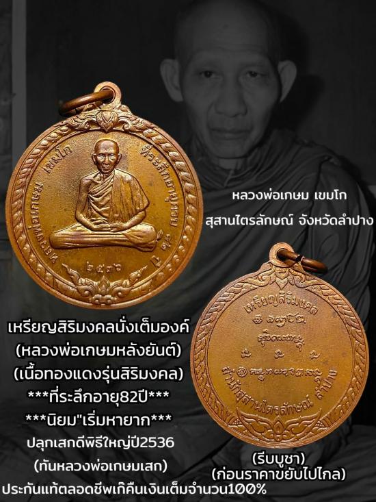เหรียญเหรียญหลวงพ่อเกษม เขมโก สุสานไตรลักษณ์ จ.ลำปาง รุ่น สิริมงคล ปี 2536 เนื้อทองแดง สภาพสวย