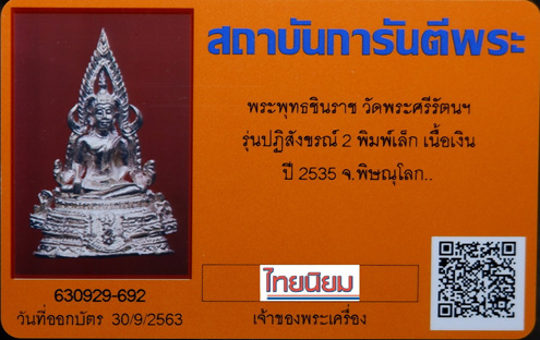 พระกริ่ง พระพุทธชินราช ภปร. รุ่นปฏิสังขรณ์ "เนื้อเงิน" ปี 2535 กล่องเดิม ๆ ครบๆ + บัตรรับรอง G-PRA