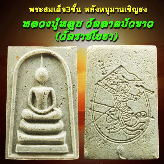 พระสมเด็จเนื้อผง หลังหนุมานเชิญธง หลวงปู่หลุย วัดลาดบัวขาว(วัดราชโยธา) สะพานสูง กรุงเทพฯ