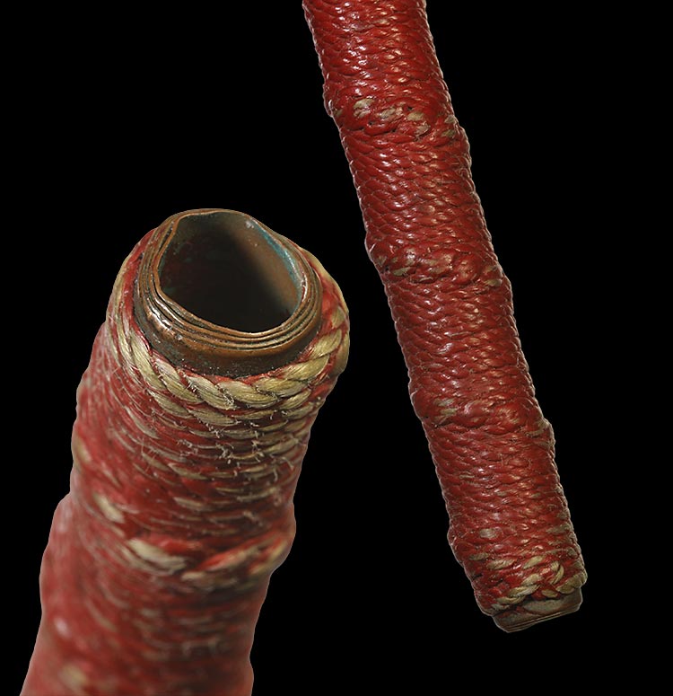 วัดใจ**เครื่องราง ตะกรุดเนื้อทองแดงถักเชือก ลงชาดแดงเก่า ยาว 4.5นิ้ว ไม่ทราบที่....ตามสภาพครับ |