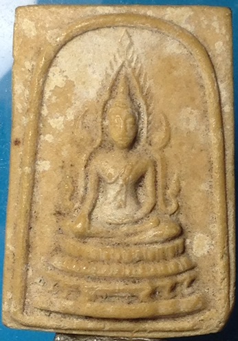 พระพิมพ์พระพุทธชินราช เนื้อผงน้ำมัน ด้านหลังปั้มจมรูปพระสงฆ์ครึ่งองค์ ด้านล่าง"หลวงพ่อใหญ่"