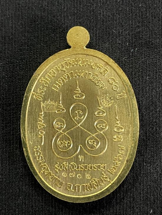 เหรียญเจริญอายุวัฒนมงคล 80 ปี หลวงปู่ศิลา สิริจันโท เจริญพรบน รุ่นสีเงิน รวย รวย เนื้อฝาบาตรผิวโบราณ หมายเลข 1702 พร่อมกล่อง